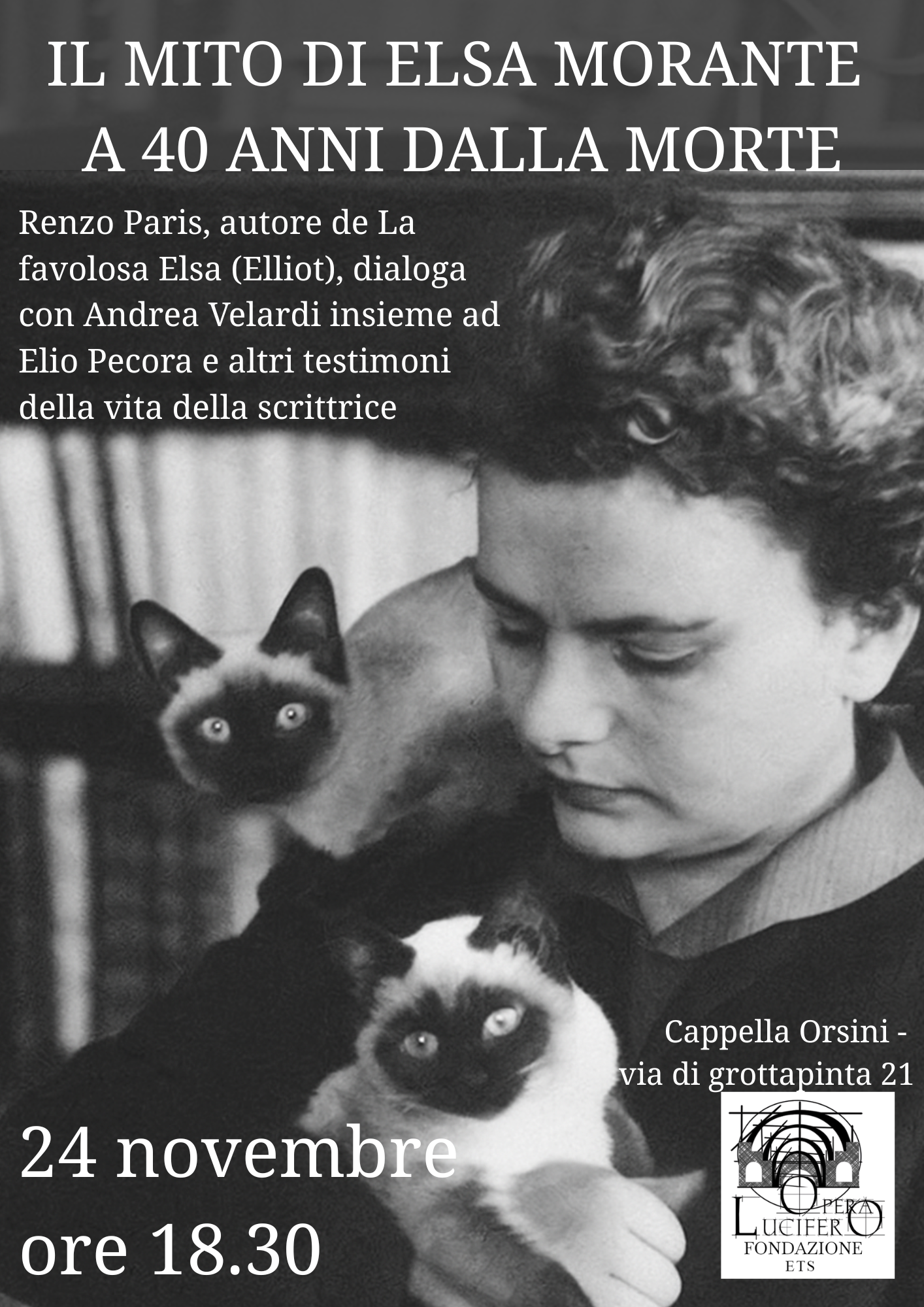 Renzo Paris, autore de La favolosa Elsa (Elliot), dialoga con Andrea Velardi insieme ad Elio Pecora e altri testimoni della vita della scrittrice.