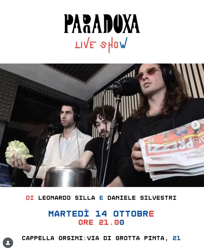 Dopo una stagione radiofonica che ha sfidato il pensiero convenzionale, Paradoxa prende vita sul palco. Una serata unica, tra teatro, musica e pensate che non lasciano certo indifferenti.