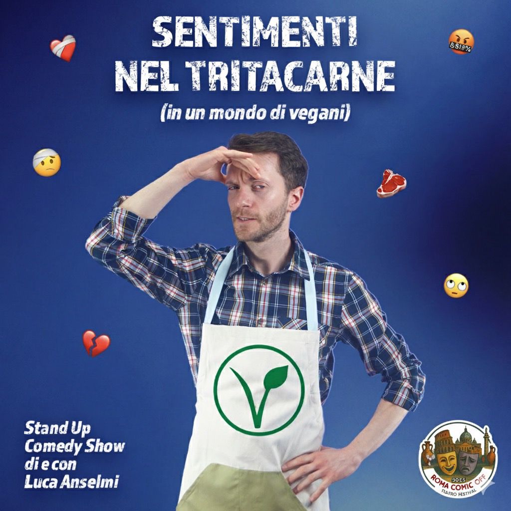 Sentimenti nel tritacarne (in un mondo di vegani) è uno spettacolo di Stand Up Comedy scritto e interpretato da Luca Anselmi, ma soprattutto vissuto sulla mia pelle. Un viaggio dove esplora le sfide e le situazioni paradossali che affronta nella sua vita, tra una relazione sui generis e like che possono fare la differenza tra il tornare con la sua ex (aiuto!) e uscire con una nuova ragazza (magari la donna della mia vita). Non manca poi un gossip amoroso che riguardno lui, lei (ma lei chi?) e un famoso trapper. Uno show dove sentimenti, like e persone terze non sono mai al loro posto. Insomma tutto nel tritacarne(?), tranne le risate.